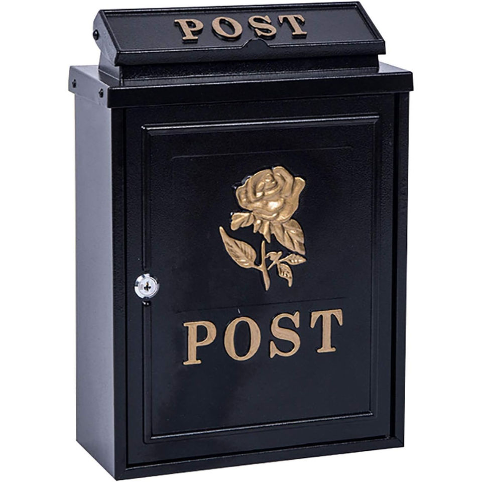 Vintage Antique Black Wall Mounted Mailbox Iron Steel Letter Box With Lock Traditional Old Style Home Garden Decor Post Box