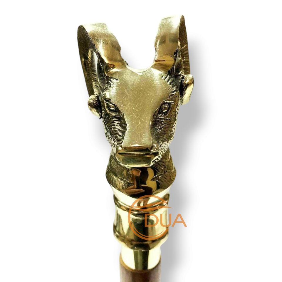 Vintage Antique Brass Handle Walking Cane Wooden Stick with Mountain Goat Head Unique Walking Sticks Gift