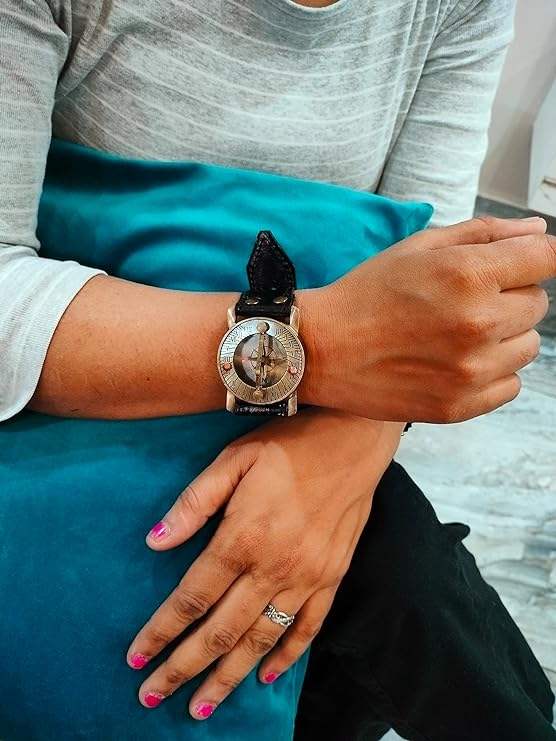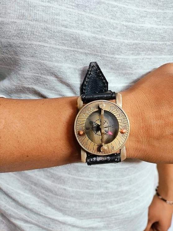 Vintage Antique Sundial Compass with Leather Band Retro Watch Nautical Comfort Wear Handmade Article Camping Compass Boating