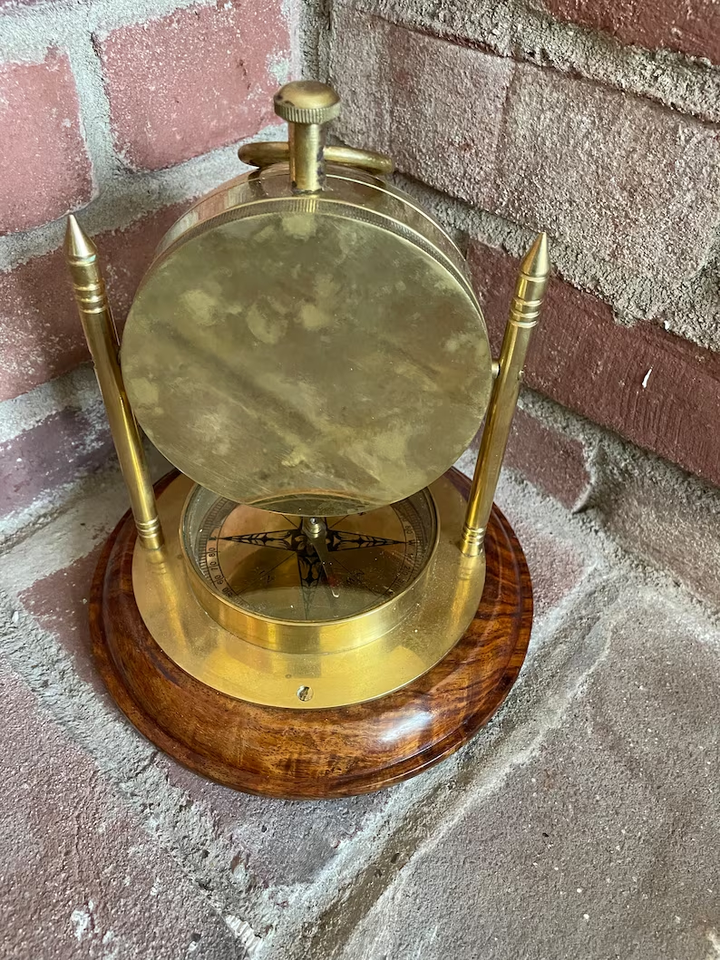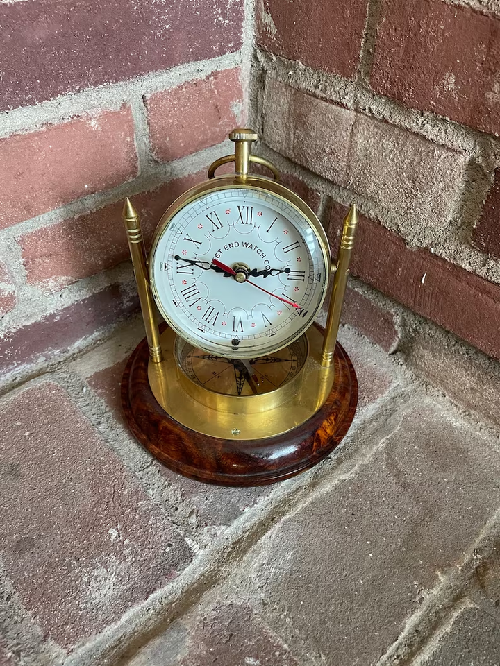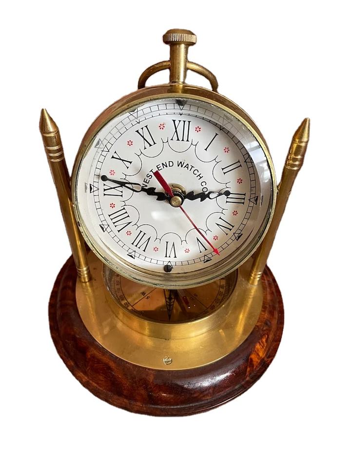 Vintage Art Decor Nautical Brass Clock with Compass Metal Design by Calvin Handicraft