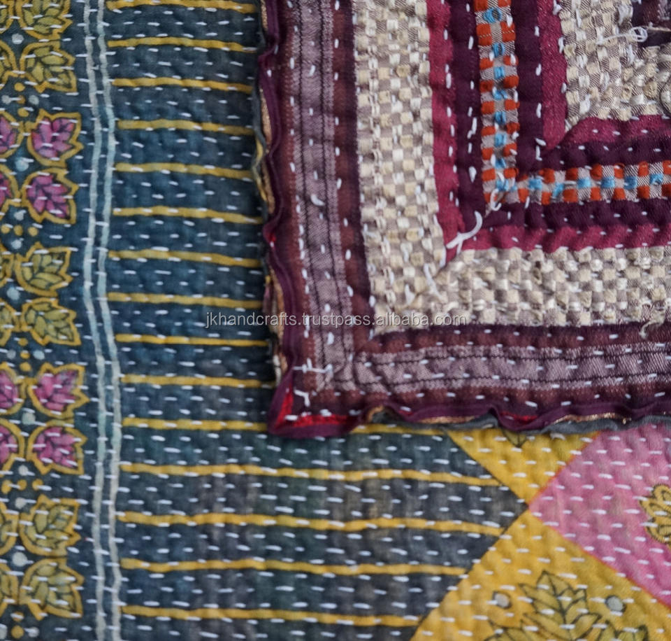 Vintage Authentic Indian Sari Kantha Quilt Pure Cotton Kantha Gudri