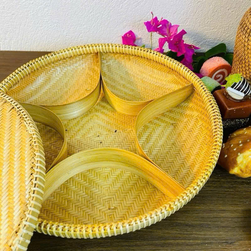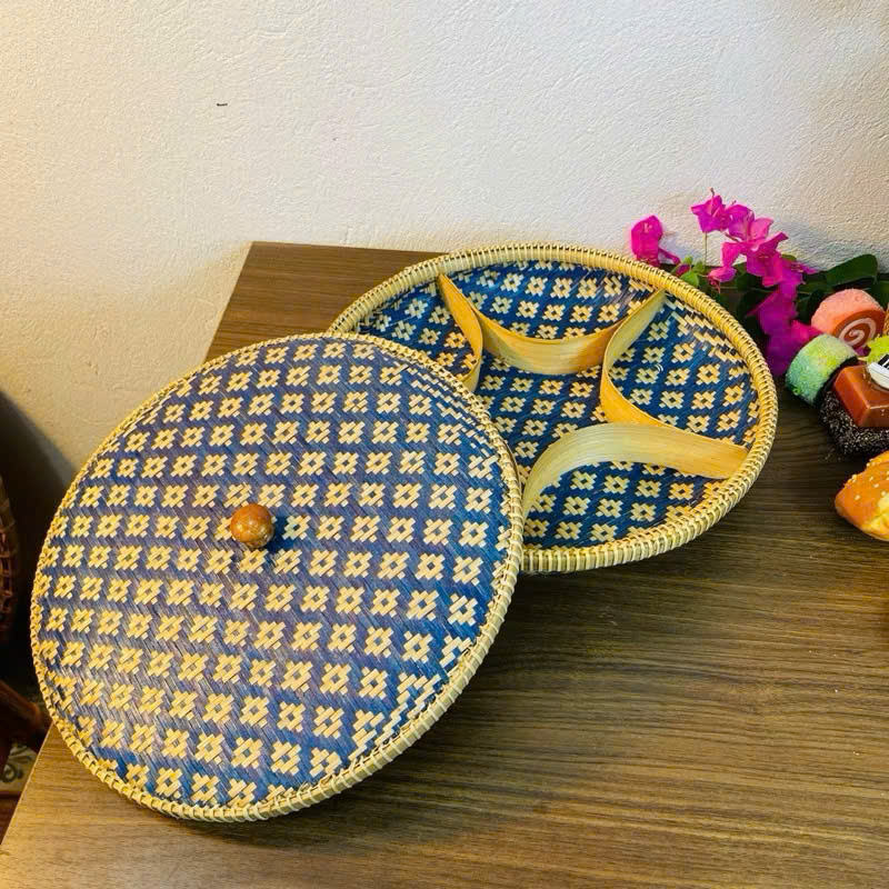 Vintage Bamboo Tray Bamboo Gift Basket with Hexagonal Pattern for Home Storage and Seasonal Festival Decoration Storage CandyJam
