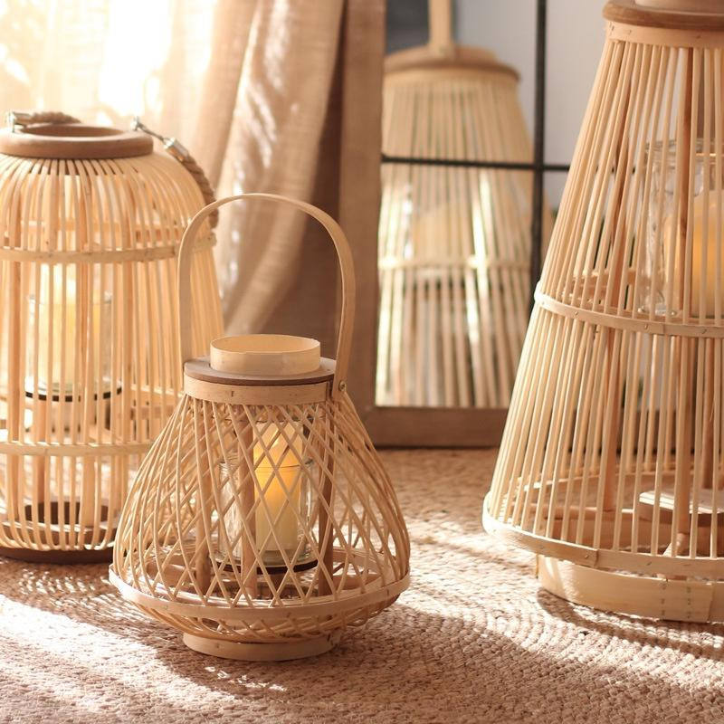 Vintage Bamboo Weaving Lantern Candle Hanging Lamp Shades Antique Home Decoration