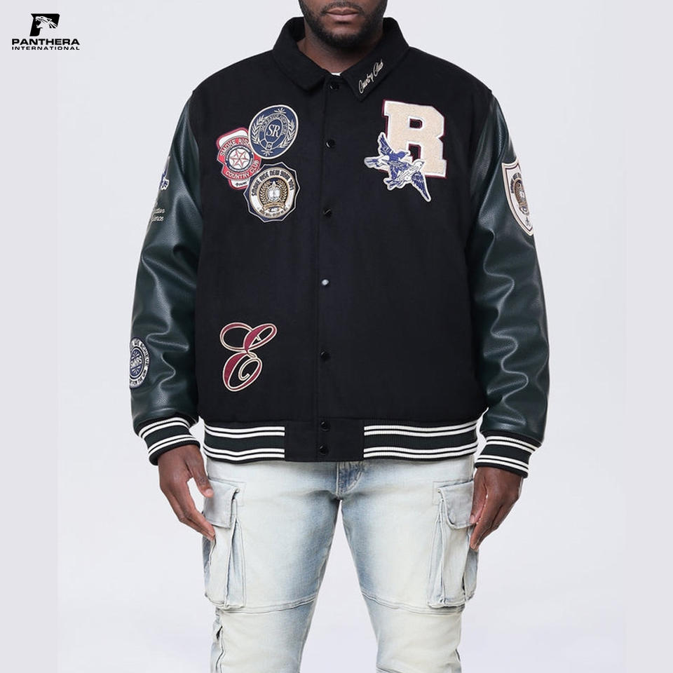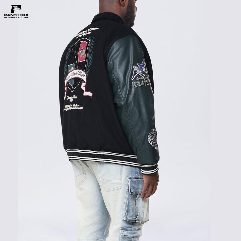 Vintage Black Baseball Jackets for Men Custom Genuine Leather Sleeve Letterman Varsity Jackets Manufacturers Clothing Winter
