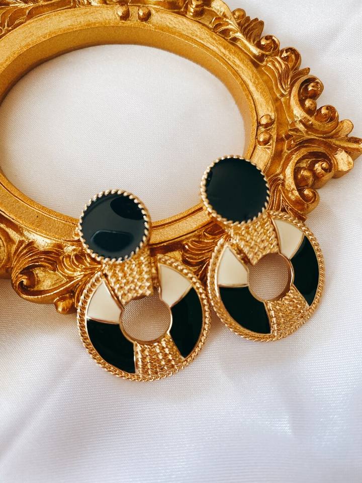 Vintage Black Dangle Earrings 925 Sterling Silver 14k Gold Plated Elegant Vintage Style Earrings Statement Jewelry Gift For Her