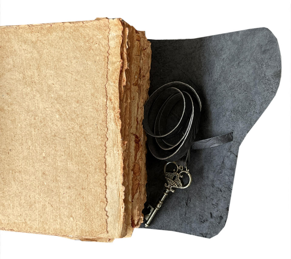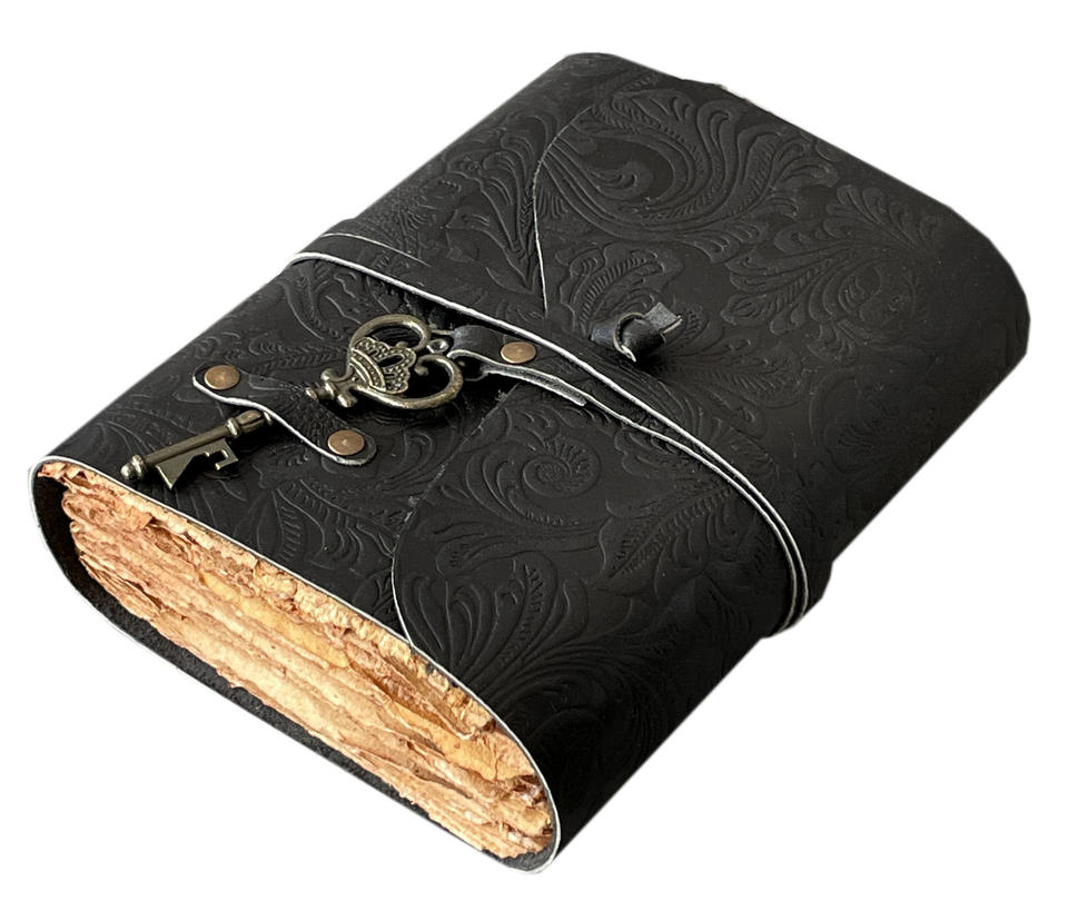 Vintage Black Genuine Leather Bound Journal Antique Key With Garden Flower Embossed Notebook Spell Book Of Shadows Grimoire Book