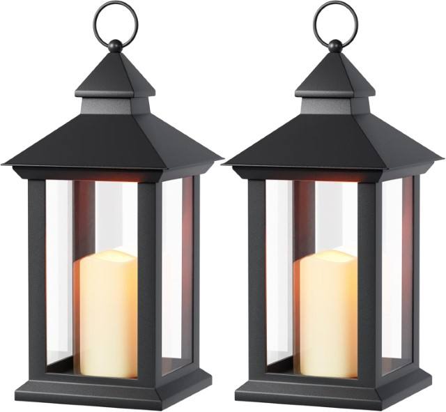 Vintage Black Metal Decorative Candle Lantern Set with Timer Candles for Indoor Outdoor Use Hanging Lanterns Decoration for Home