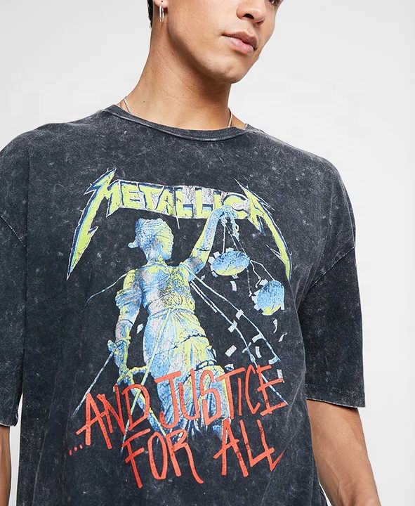 Vintage Black Printed Large Graphic Tees Acid Wash Tshirt Men Oversize Crewneck T Shirts