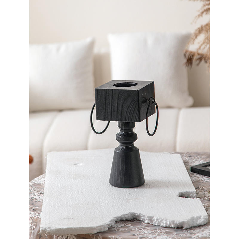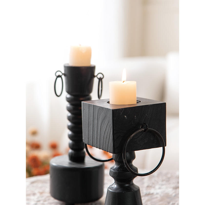Vintage Black Solid Wood Eco-Friendly Polished Candle Holder Retro Design Easter Centerpiece Wedding Gift Multi Craft