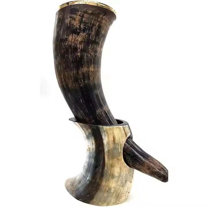 Vintage Black Viking Drinking Horn With Metal Stand Best Quality of Drinking Horn Food Safe Wedding Home Hotel Viking Horn Mugs