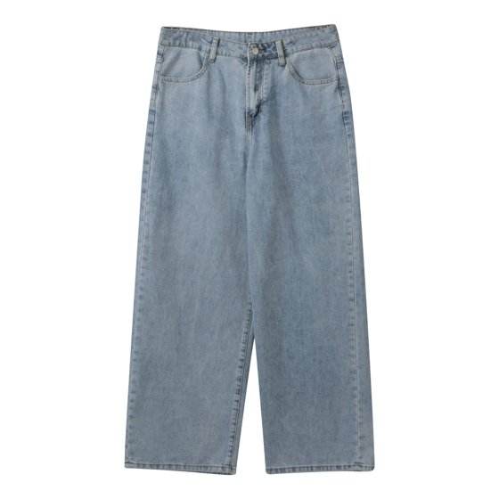 Vintage Black Washed Baggy Jeans Pants Men Wide leg Curved Blade Pants Streetwear Cowboy Casual Denim Straight Trousers