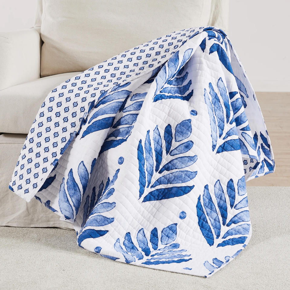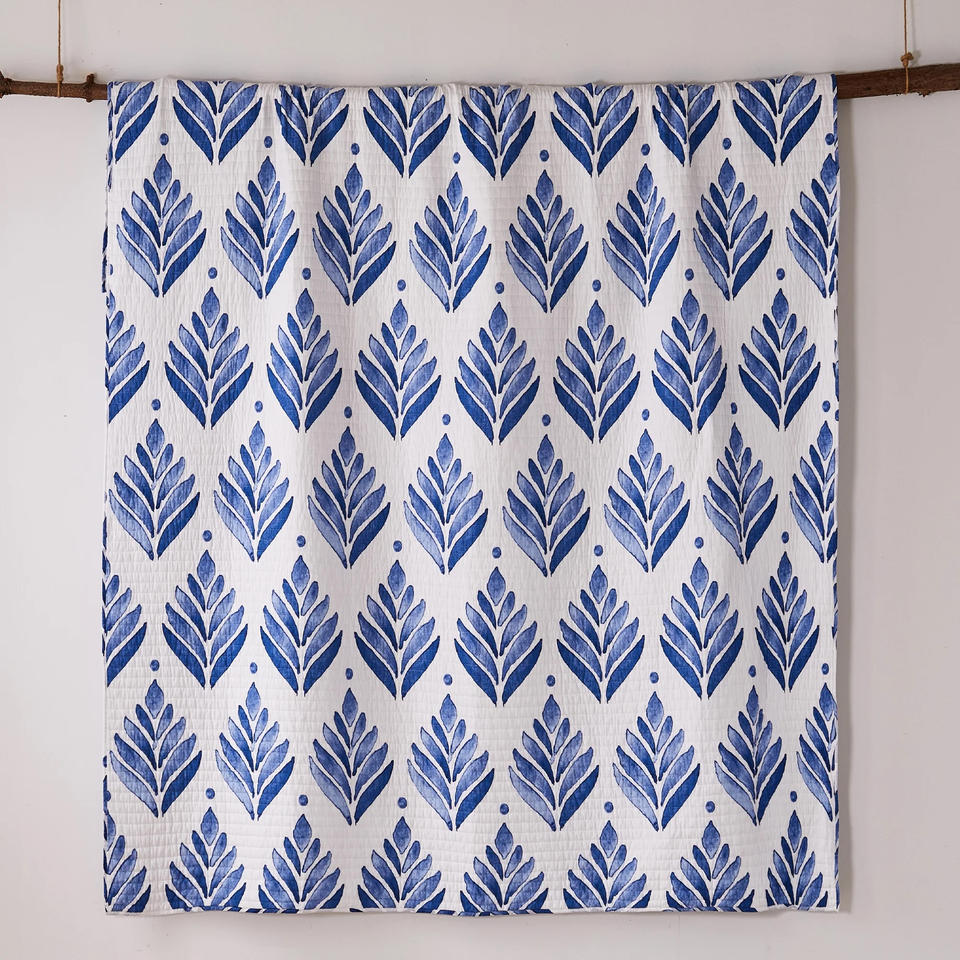 Vintage Blossom Quilt Set King Cal King Quilt and Two King Shams Blue Fan Design Blue and White Quilt Reversible Cotton set