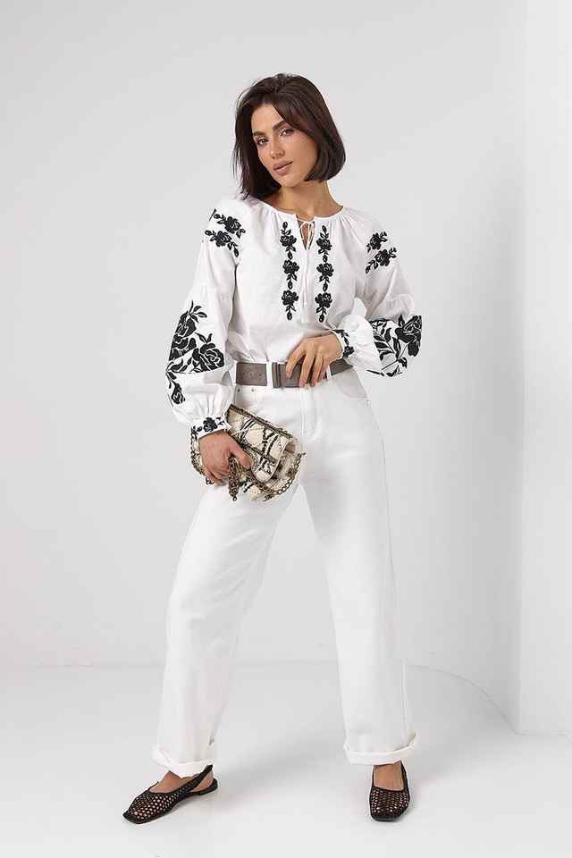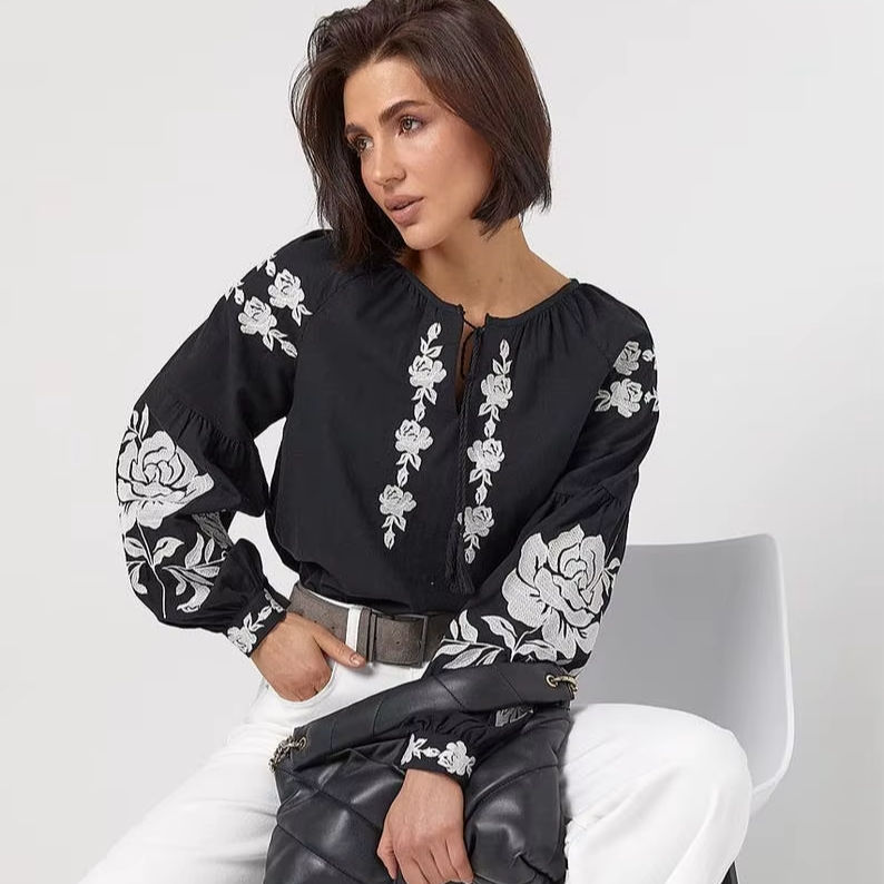 Vintage Bohemian Embroidered Blouse 100% Cotton Breathable Eco-Friendly Floral Solid Pattern Simple Elegant Design for Christmas