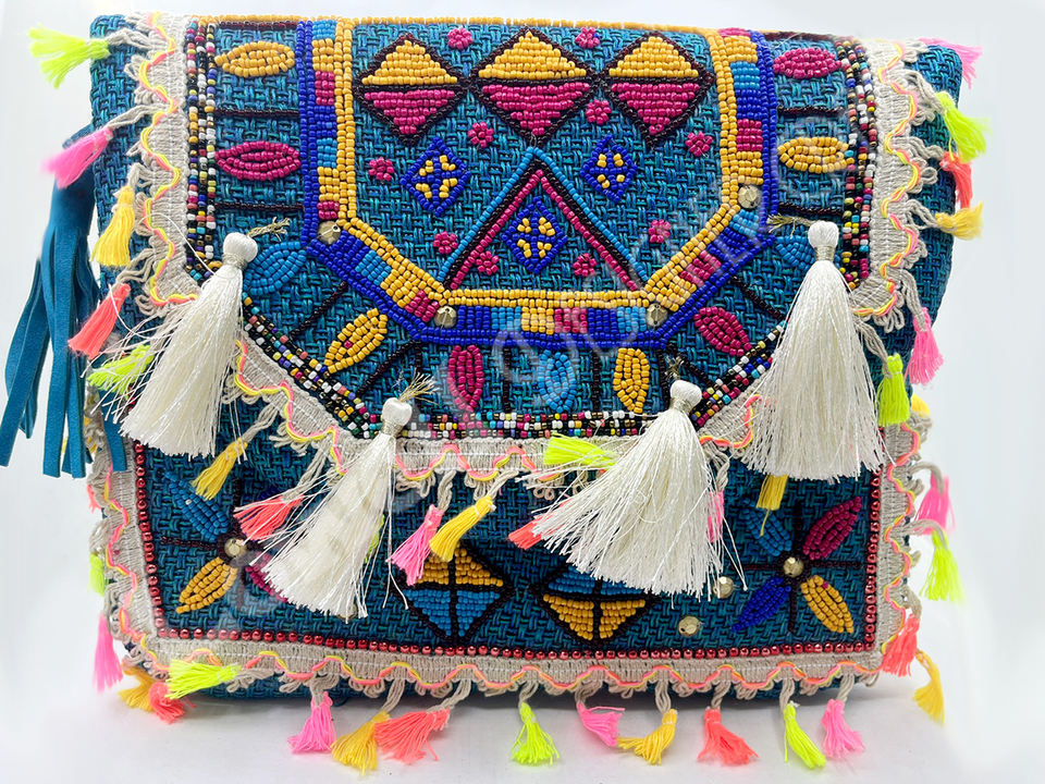 Vintage Bohemian Style Large Capacity Cotton Crossbody Messenger Clutch Bag Stylish Portable Zipper Closure Travel Purse Women