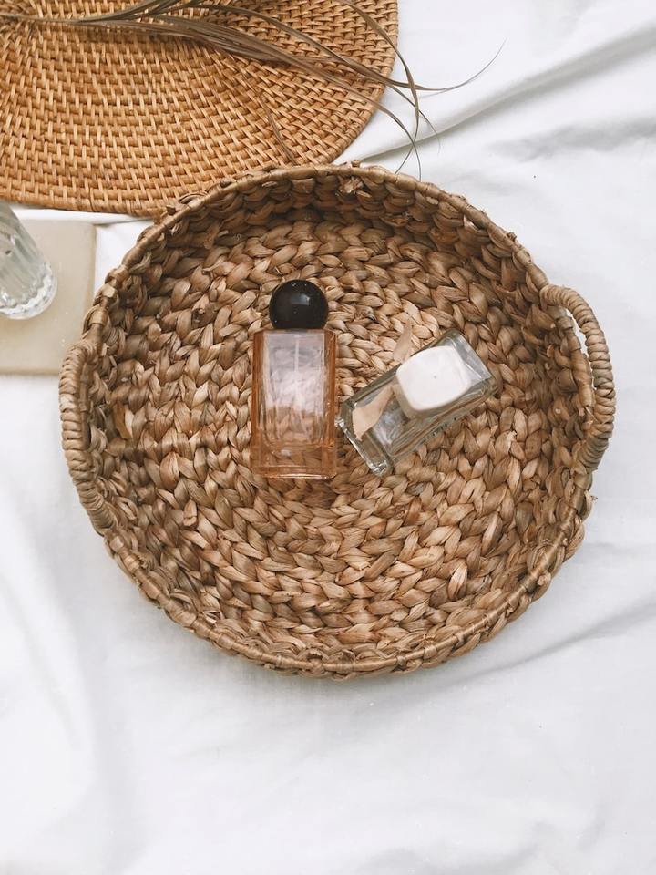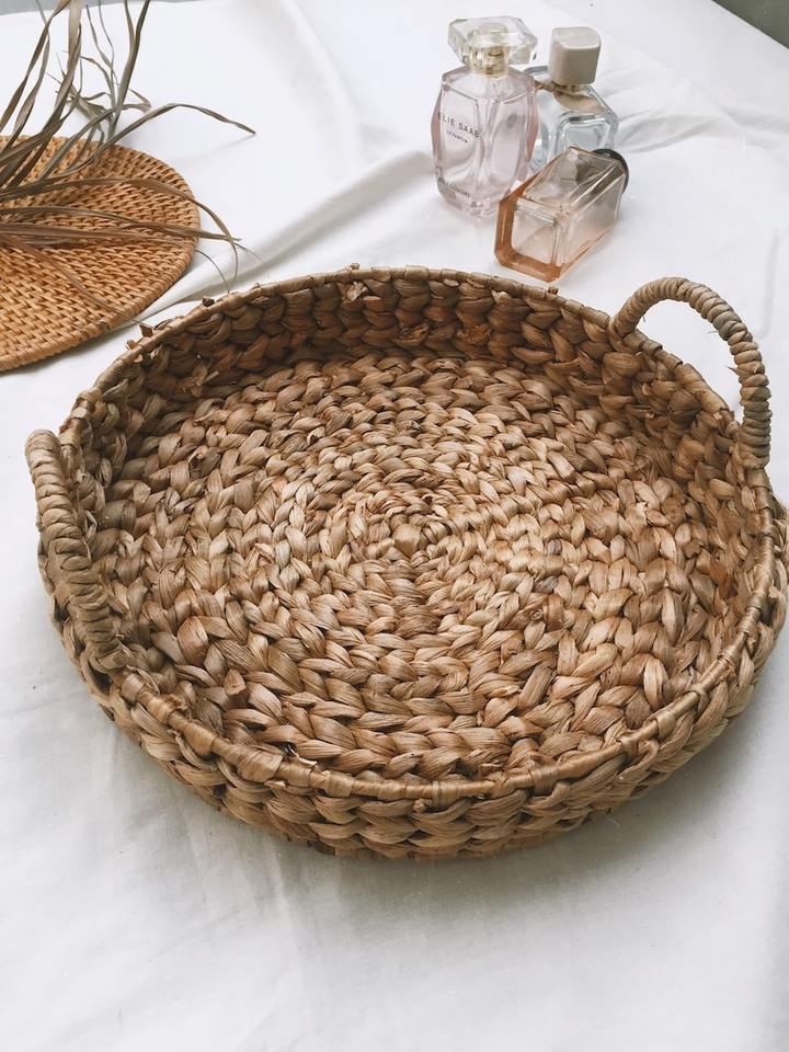 Vintage Bohemian Water Hyacinth Serving Tray with Handle for Coffee Table Desk Organizer Made in Vietnam
