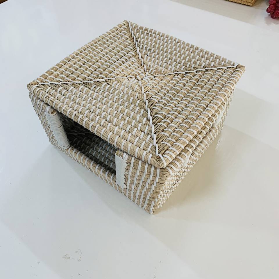 Vintage Boho Home Decor Handwoven Natural Square Seagrass Storage Basket Lid Eco-Friendly Folding Multi-functional Vietnam