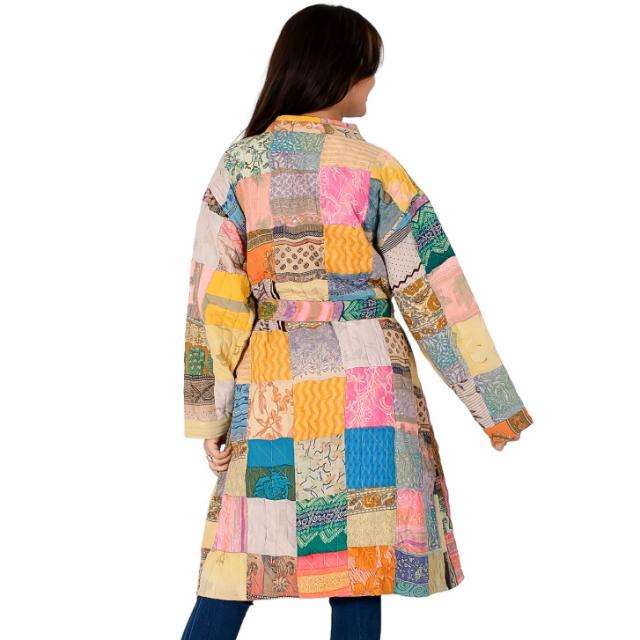 Vintage Boho Kantha Reversible Silk Jacket for Women Handmade Printed Recycled Patchwork Coat Breathable Winter Casual Wear