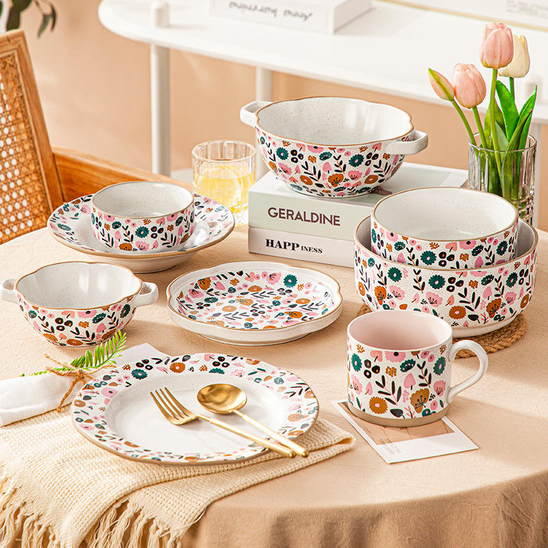 Vintage Bowl and Dish Set Ceramic Tableware Set Fashion Household Housewarming Gift Set