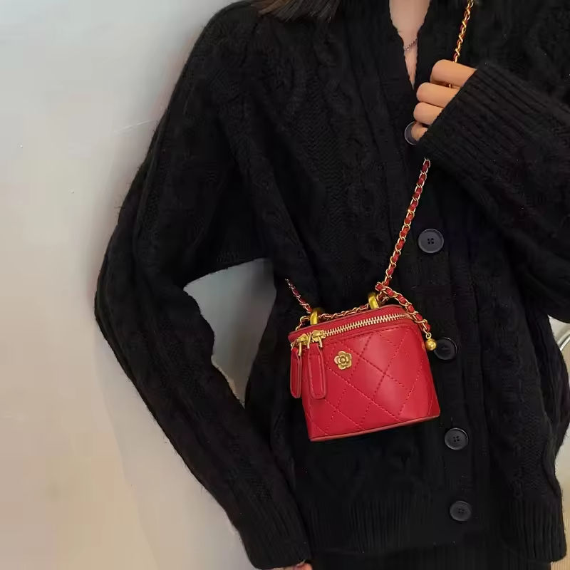Vintage Mini Messenger Purse Women Compact Handheld Wallet Structured Silhouette Fashionable Striped Pattern Genuine Leather Zip