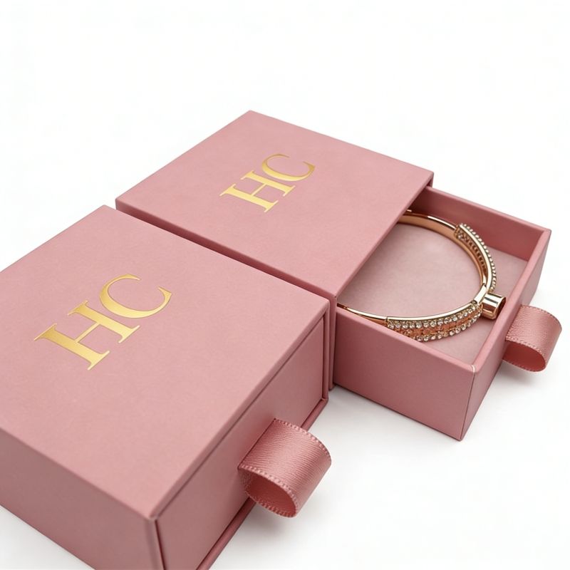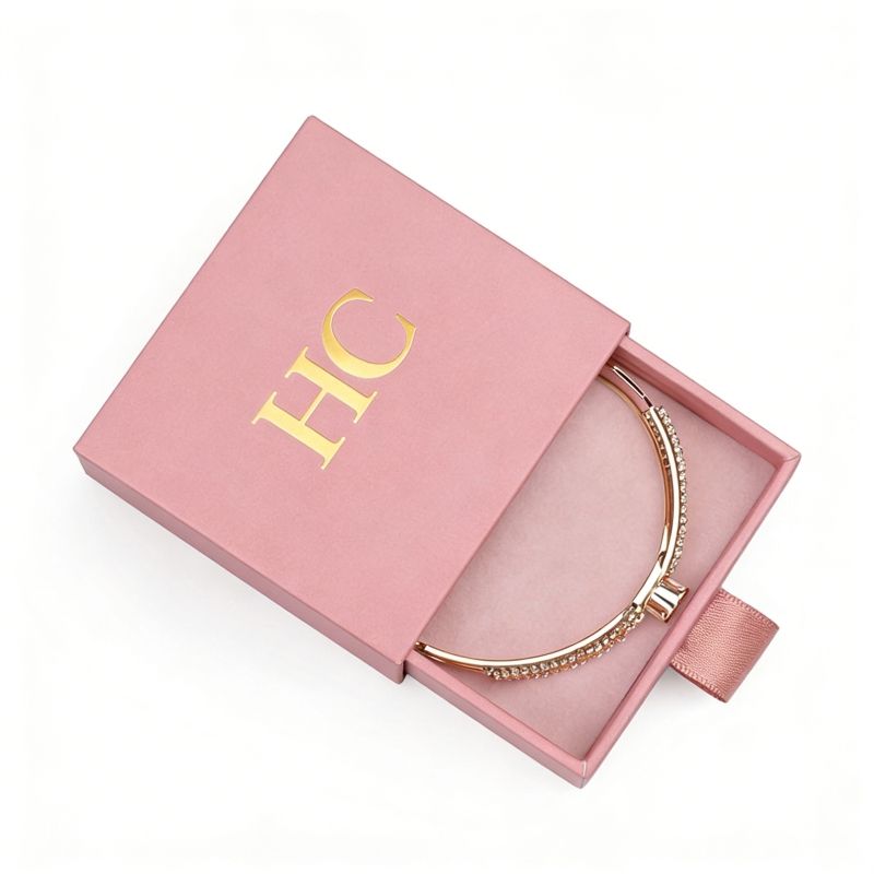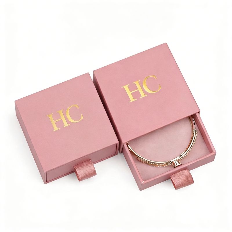 Vintage Bracelet Box Rigid Drawer Box Jewelry Gift Box with Ribbon Soft Padded Insert Foil Stamping Custom Logo OEM Factory