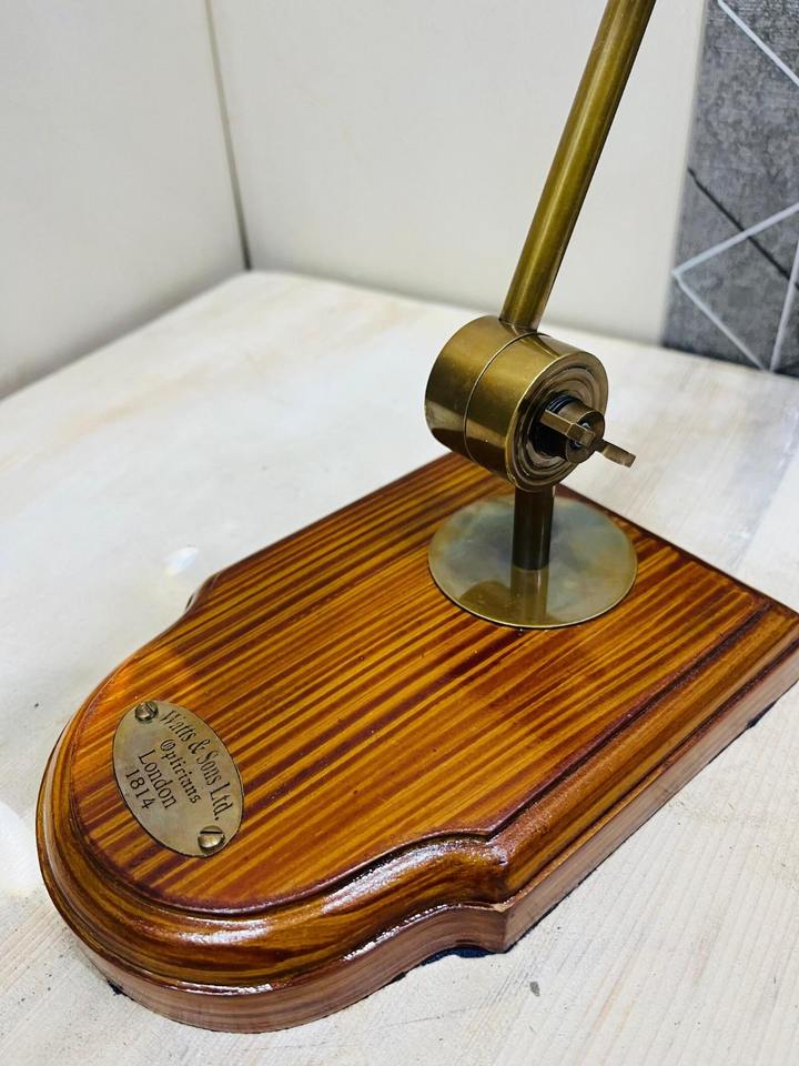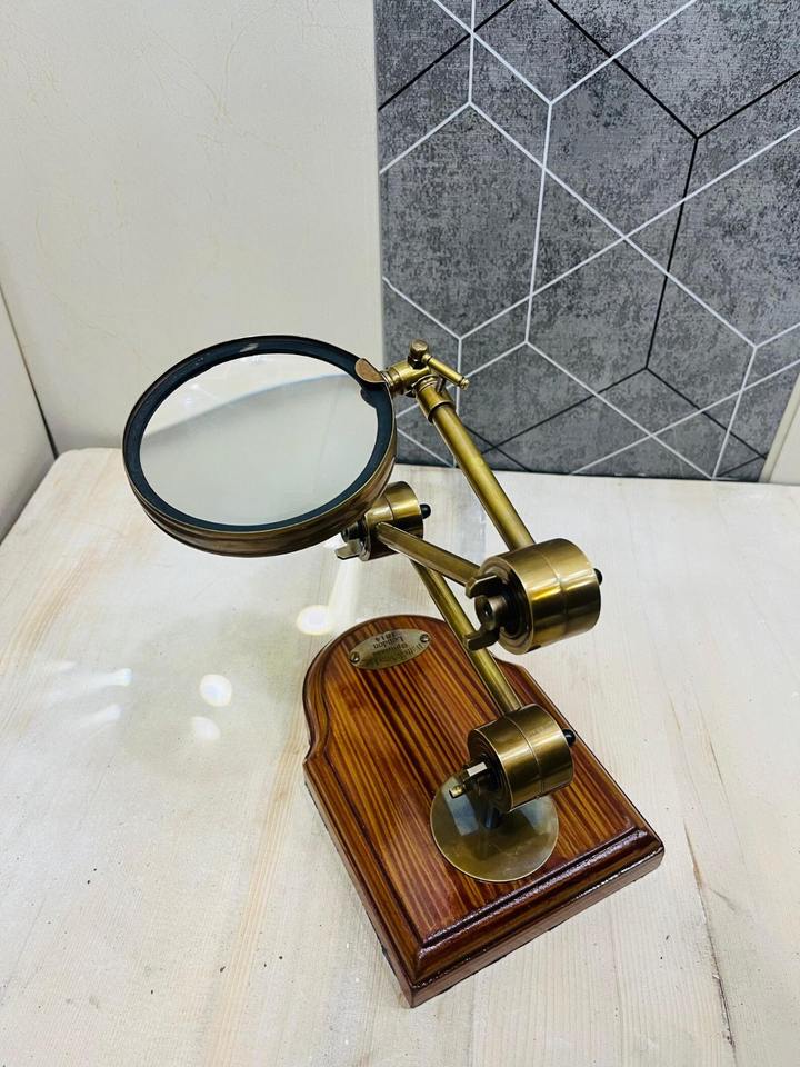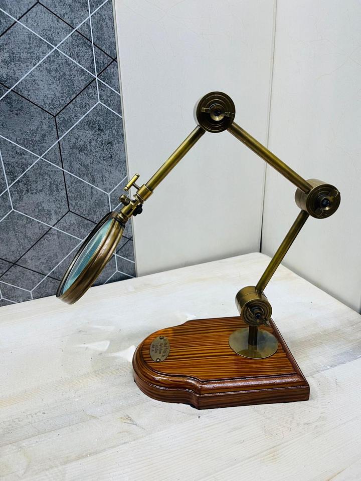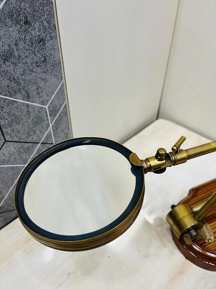 Item name:Vintage Brass Adjustable Magnifying Glass on Wooden Base
