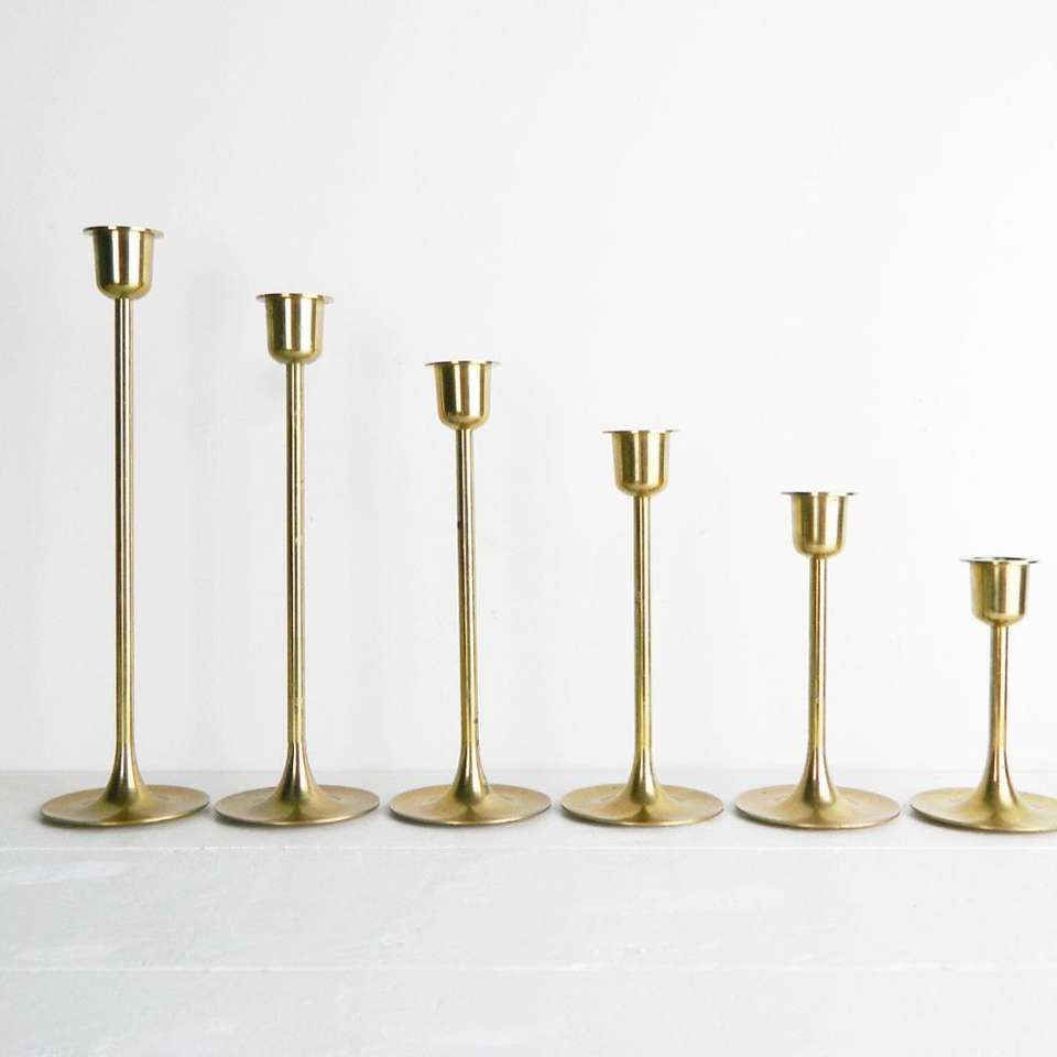 Vintage Brass Candlesticks Wedding Decor Graduated Mismatched Set Brass Candleholders Set of 7