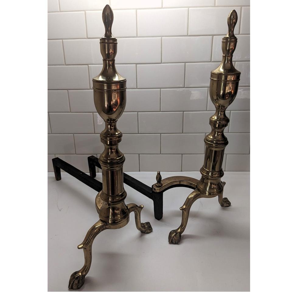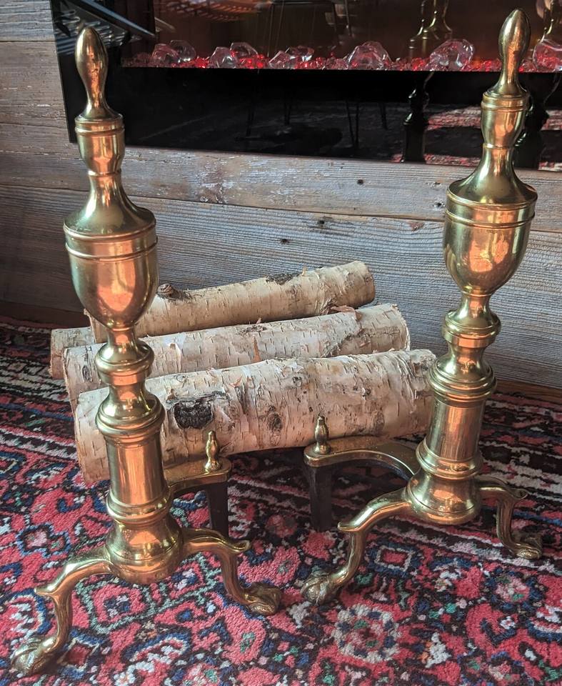 Vintage Brass Cast Iron Andirons Outdoor Fireplace Firewood Rack Log Holder Bracket Storage for Backyard Household Use