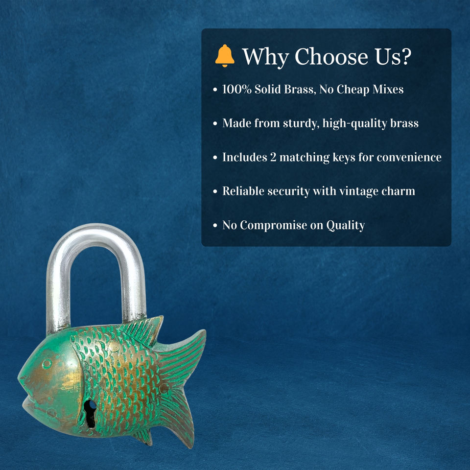 Vintage Brass Fish Padlock with Skeleton Keys Brass Functional Padlock Collectible Fish Design Antique Padlock Vintage Brass