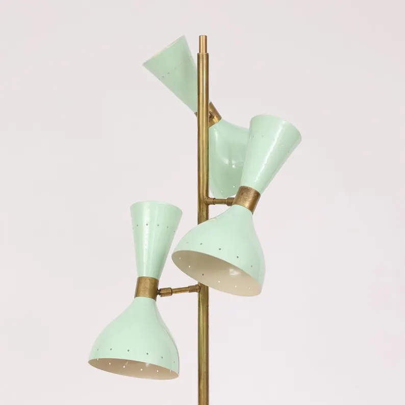 Vintage Brass Floor Lamp Handmade Base Cone Shaped Shade Sputnik Studio Light Unique Designer Home Lighting Fixture