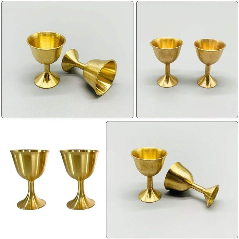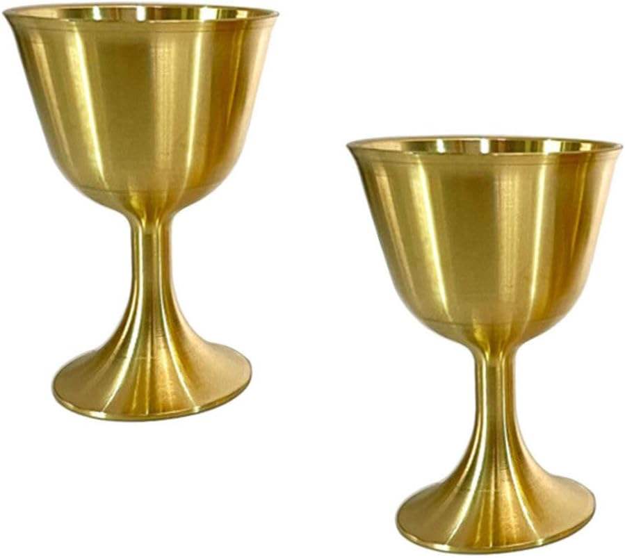 Vintage Brass Goblet Polished Food-Safe Chalice Cups for Rituals, Weddings & Wine Serving