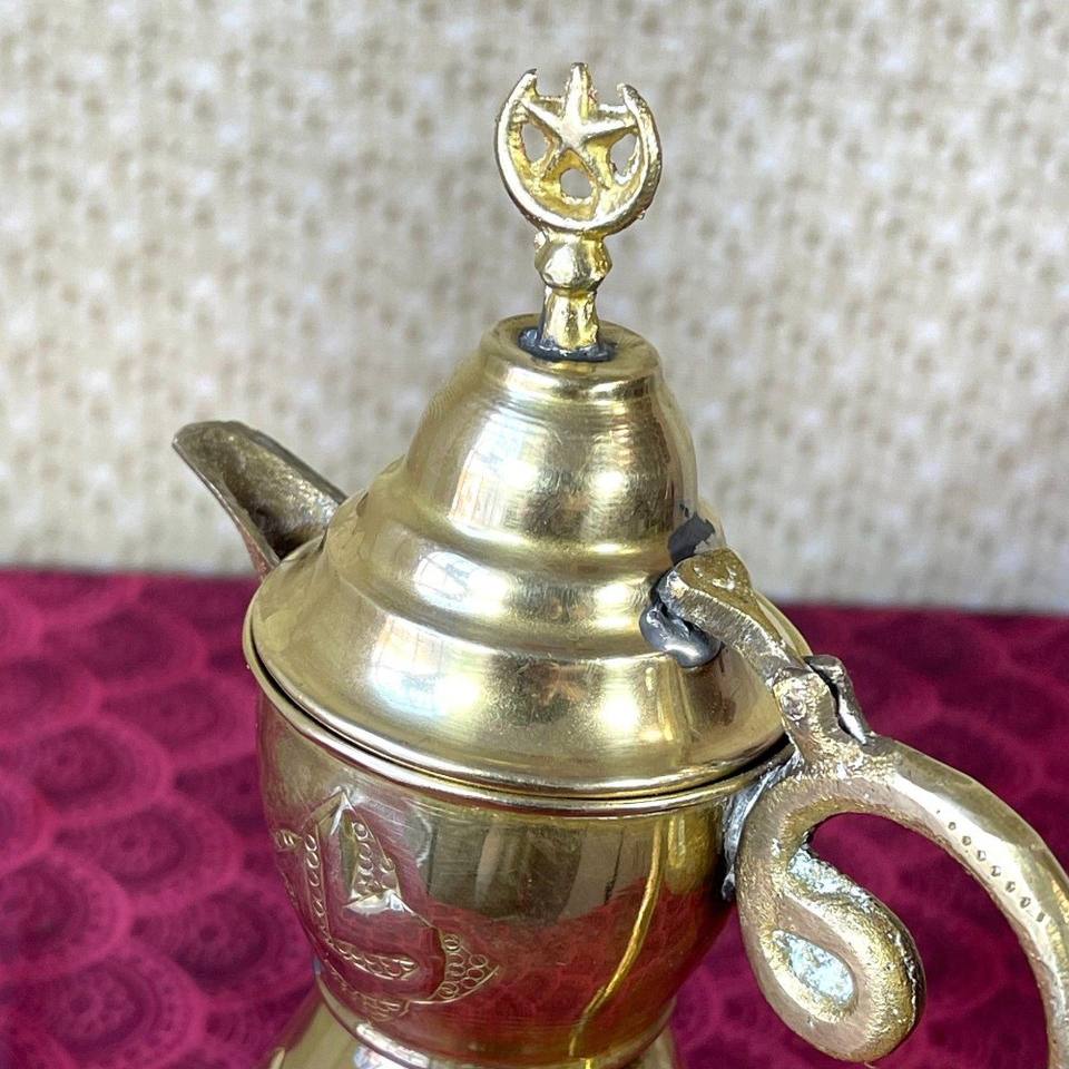 Vintage Brass Hand-Crafted Etched Dallah, Moon and Star Designable Knob Luxurious Coffee Pot