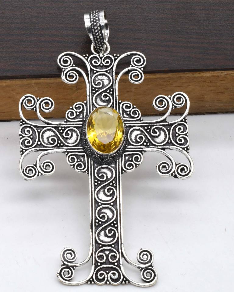 Assorted Geometric Crystal Pendant Necklaces Vintage Brass Christian Jewelry Retro Style Chic Plus Size Citrine Design Party