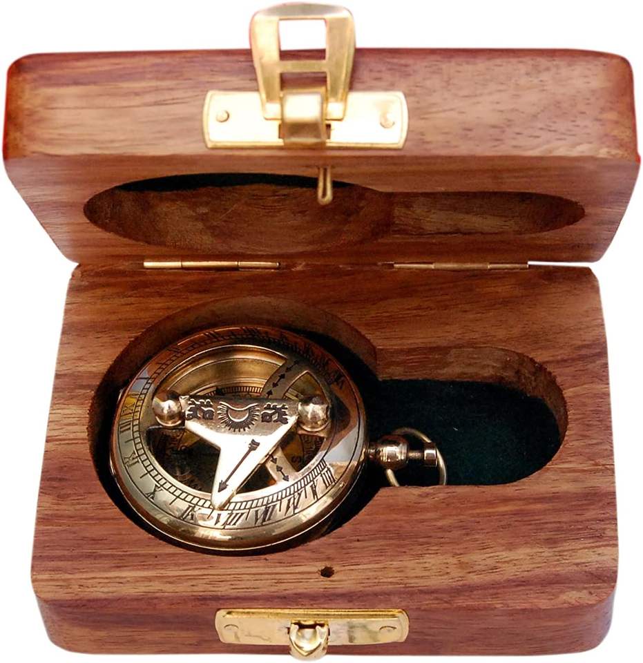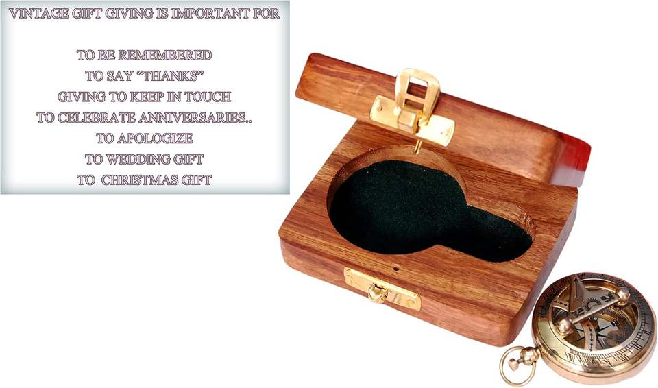 Vintage Classic Copper Compass Keychain Wooden Box | Rectangle Lightweight Eco-Friendly for Outdoor Adventures Gift for Him
