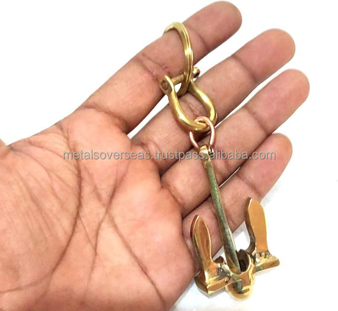 Vintage Brass Nautical Folding Anchor Keychain with Customizable Embossing Best Gift for Him/Her