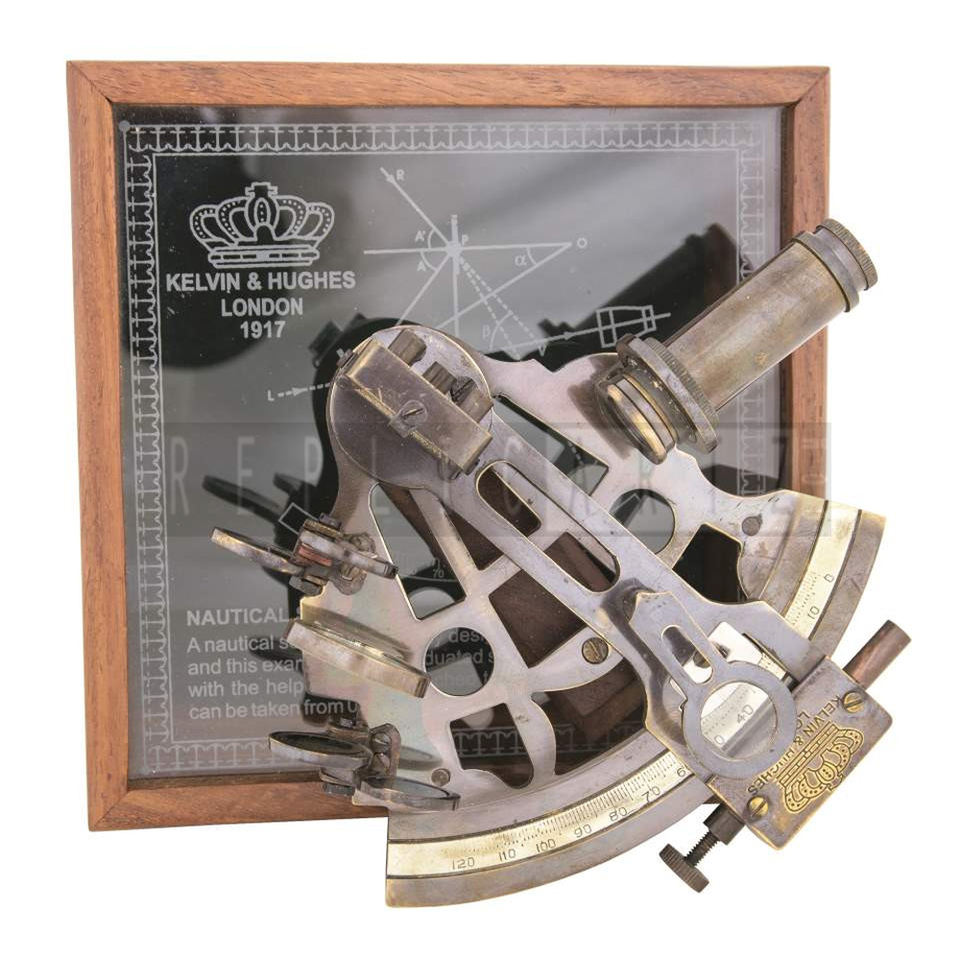 "Vintage Brass Sextant with Glass Wooden Box Nautical Navigation Instrument Unique Wedding & Graduation Gift"