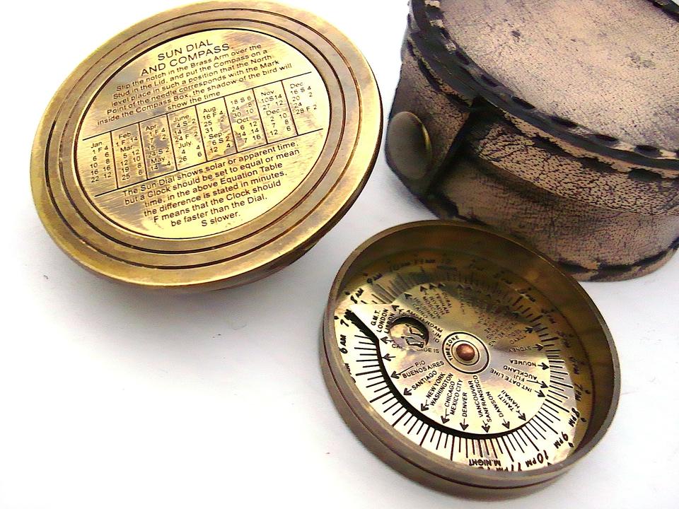 Vintage Brass Sundial Compass with Leather Case-Mary Rose 1511-1545 Engraved Nautical Collectible & Gift Durable Outdoor Pointer