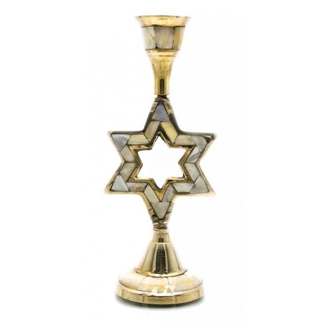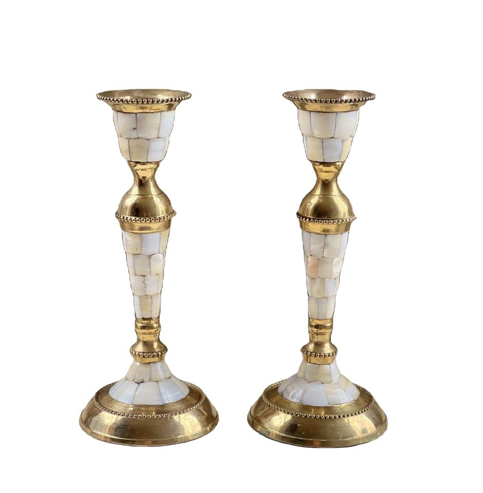 Vintage Brass and Mother of Pearl Inlay Candlestick Holders for Living Room Table Candle Holder
