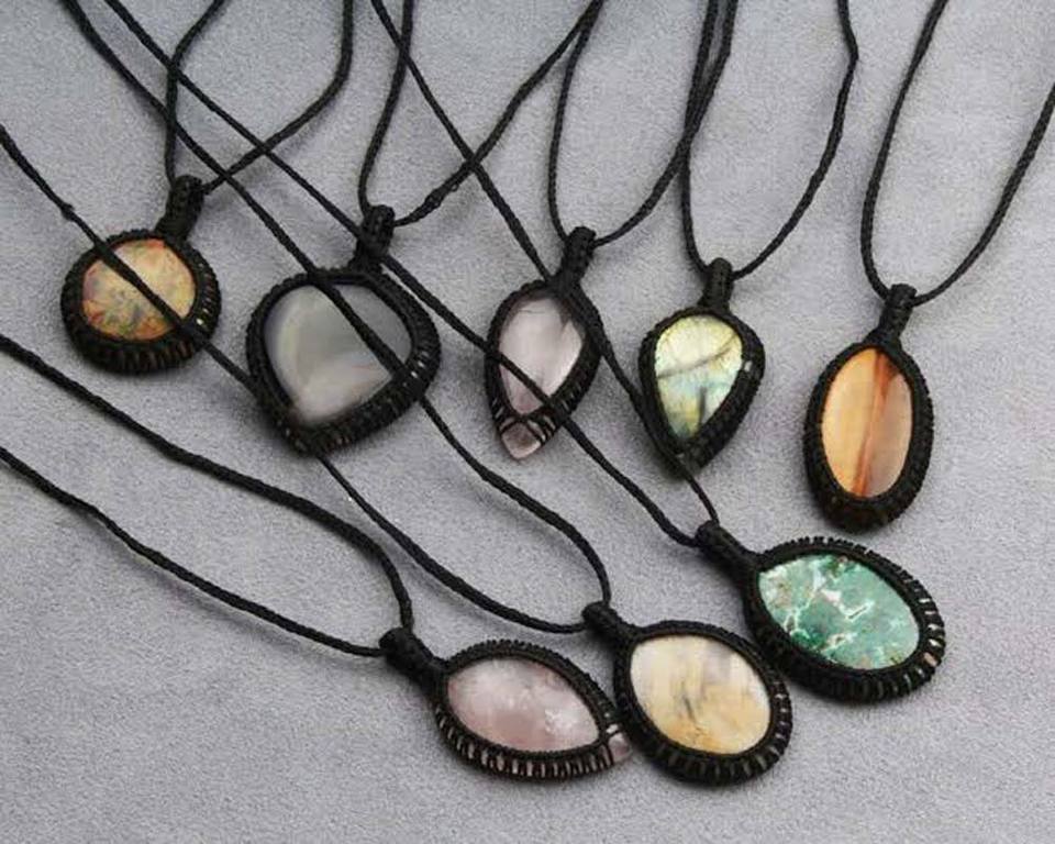 Vintage Brown Cord Macrame Statement Necklace Silver Plated Brass Mix Color Threads Pendant Unisex Gift