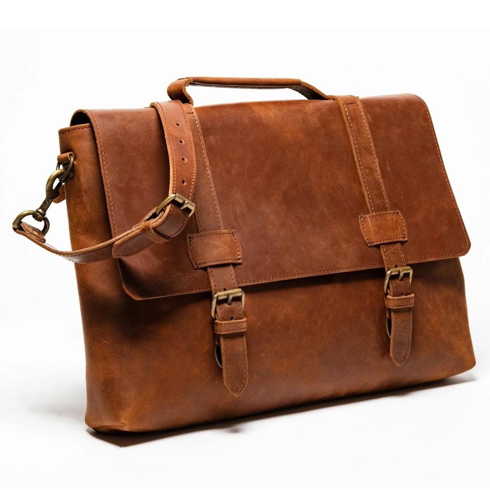 Vintage Brown Genuine Leather Men's Laptop Briefcase 12 Inch Satchel Business Travel Shoulder Bag