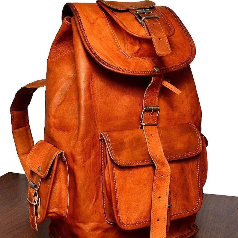 Vintage Brown Leather Backpack Men Brown Leather Satchel Messenger Laptop Briefcase College Travel Rucksack