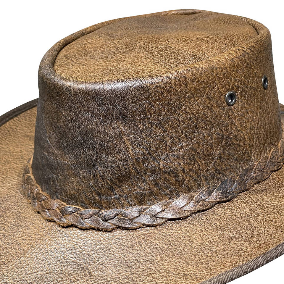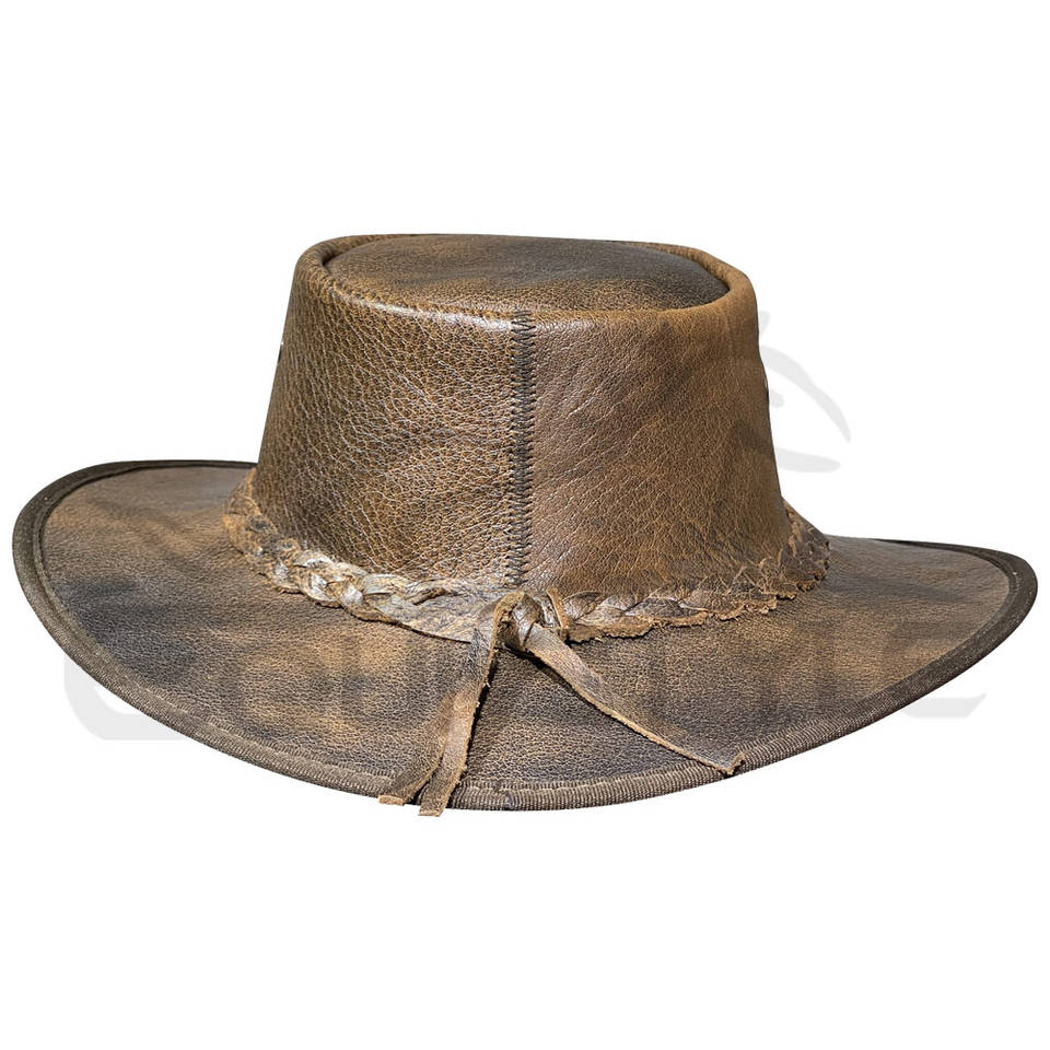 Vintage Brown Leather Cowboy Hat Crushable Casual Outdoor Travel Use OEM Pakistan Manufacturer Custom Western Hats