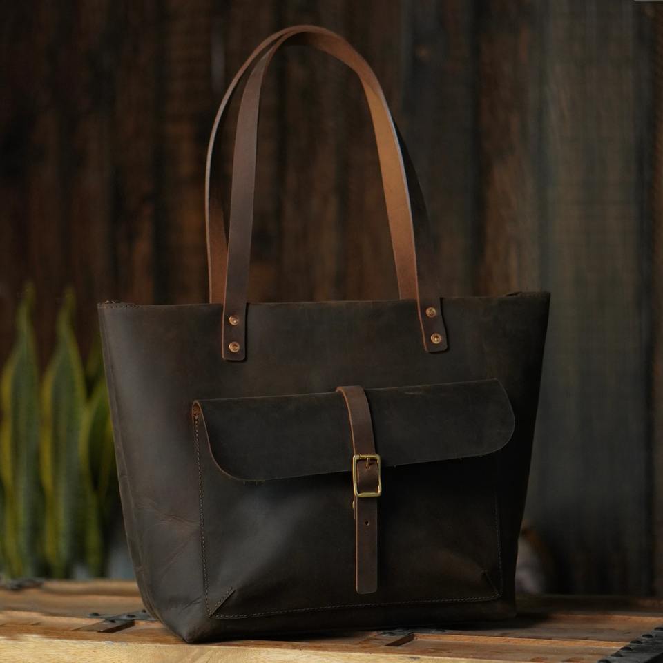 Vintage Brown Leather Tote Bag Women Large Work Laptop Handbag Zipper Closure Portable Pocket Rustic Shoulder Purse Teacher Gift