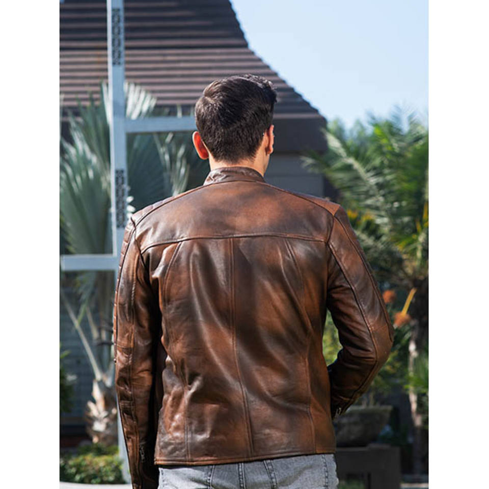 Vintage Brown Slim Fit Leather Jacket for Men — Genuine/PU Leather, Zipper Closure, Classic Biker Style