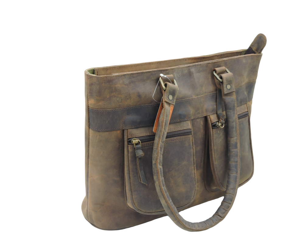 Vintage Buffalo Leather Customizable Tote Bag Ladies Shoulder Personalized Handbag Purse Inside Canvas Lining Two Front Pockets