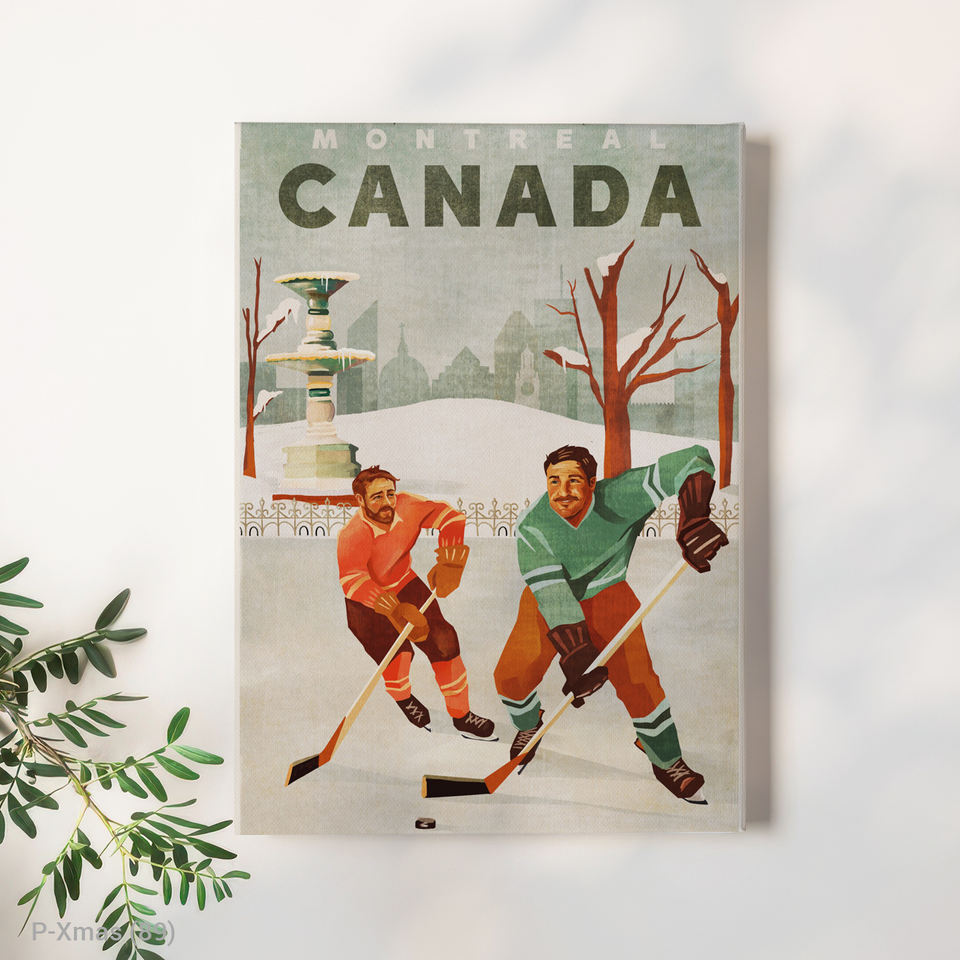 Modern Canada Ice Hockey Canvas Poster with Wood Frame
