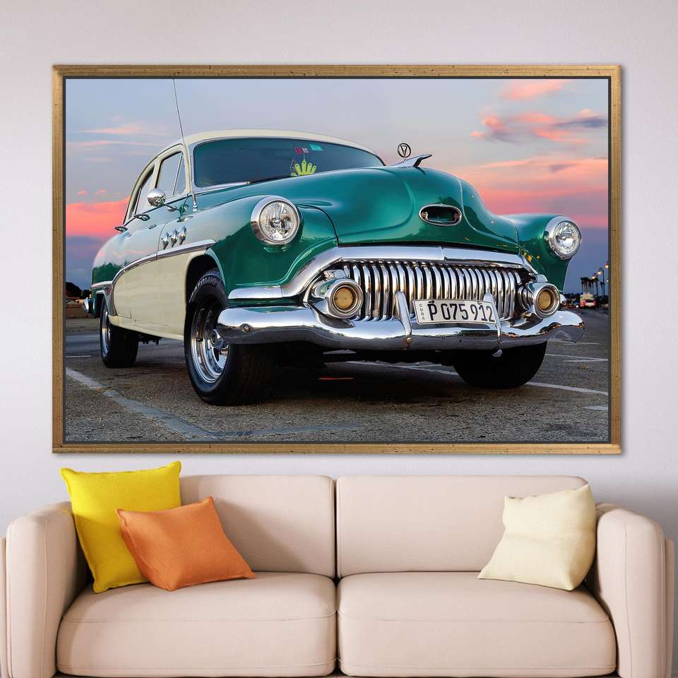 Vintage Car Art Canvas: Printed Retro Car Artwork for Garage Decor,1P:Gold Framed