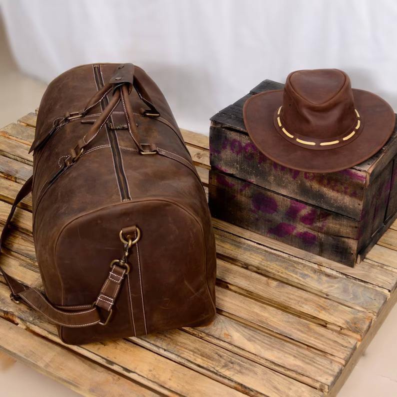 Vintage Leather Backpack Cabin Carry-On Weekend Duffle Luggage Sport Style Gym and Overnight Travel Bag Weekender Bag