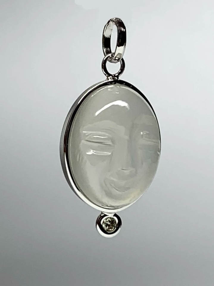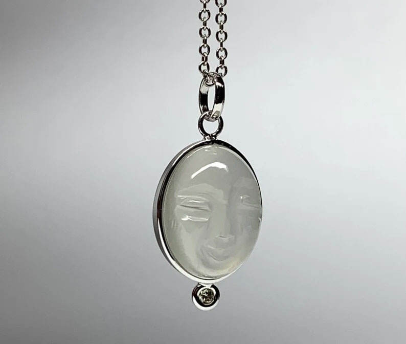 Vintage Carved Moon Face Gemstone Pendant Necklace Silver Bezel Set Gold Plated Handmade Celestial Wedding Jewelry Wholesale