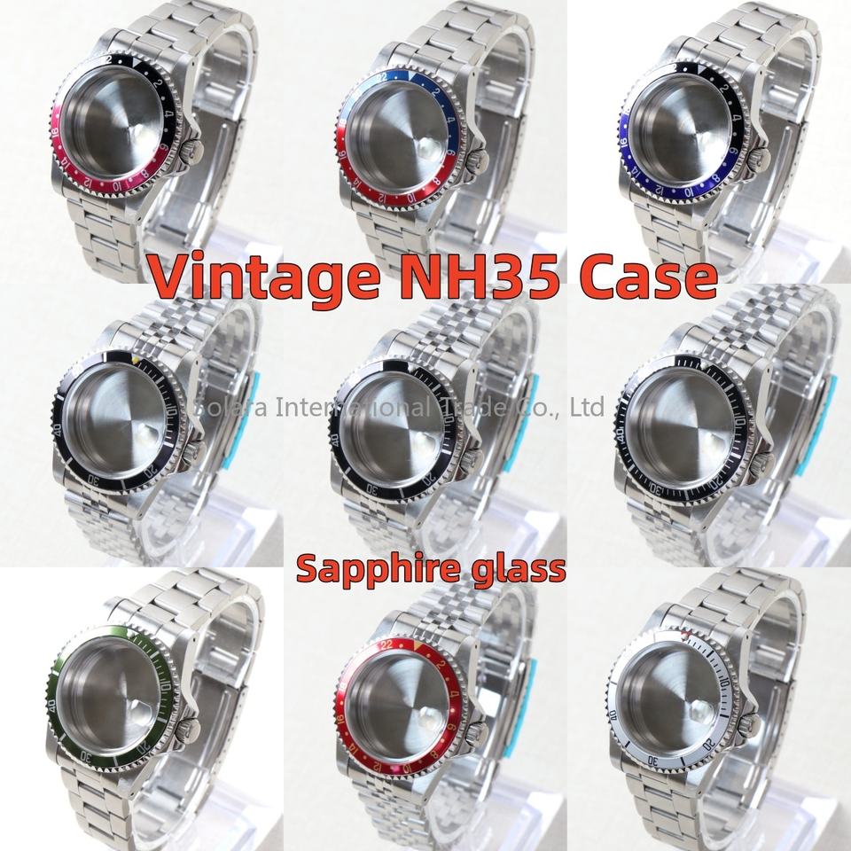 Vintage Case 39MM Sapphire Glass diy Watch Accessories for NH35 Movement Watch Case for Retro Style Strap Aluminum Bezel