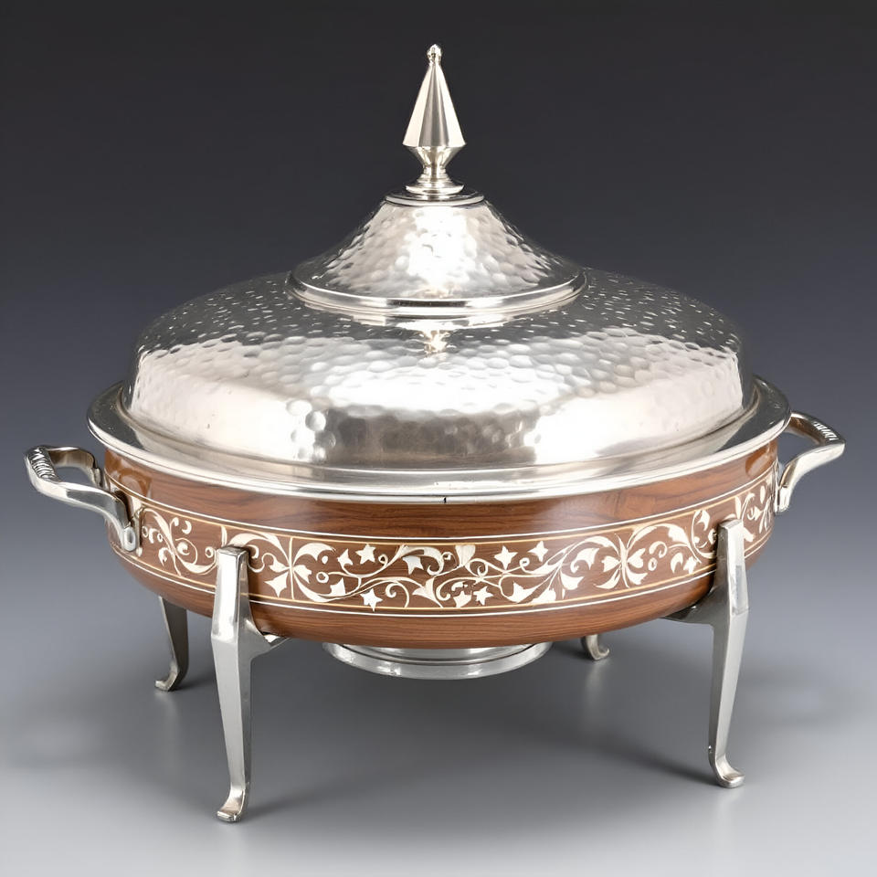 Vintage Casserole Dish Handcrafted Wood Design & Hammered Metal Stainless Steel Chafing Dishes with Lid Perfect for Dining Serve